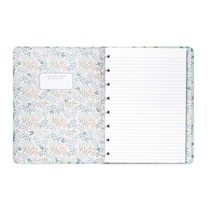 Uchovávejte vaše myšlenky a poznámky v tomto znovu plnitelném zápisníku Filofax Notebook A5 v mintové barvě z kolekce Botanical inspirovaného přírodou. Pevné kartonové laminované desky zdobí přírodní vzory nejenom z vnější strany, ale také té vnitřní. Zápisník obsahuje linkovaný papír s gramáží 100 g/m2, které je vhodné i pro plnicí pero. LIsty můžete přemisťovat nebo doplňovat, což vám umožní sestavit si zápisník, který skutečně vyhovuje vašim potřebám. Jeho bílá dvoudrátová vazba mu umožňuje ležet naplocho a barevně sladěná gumička vám pomůže udržet vše na svém místě.
