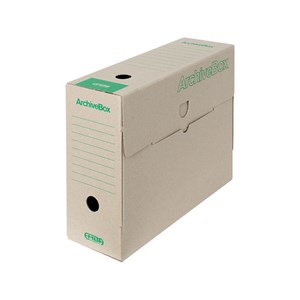 box vyroben z osvědčené kvalitní hladké lepenky, ekologicky šetrný výrobek, kvalitní potisk sítotiskem v zelené barvě, dodávané v rozloženém stavu po 25 kusech ve fólii, box 15 cm je doplněním řady, pojme 2x více dokumentů než typ 7,5 cm, použití silnějšího a pevnějšího materiálu je zárukou mimořádné stability, balení 20 ks ve fólii