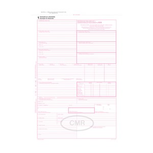 náležitosti dle Úmluvy o přepravní smlouvě v mezinárodní silniční nákladní dopravě, samopropisovací (NCR), číslovaný, formát A4 na výšku, obsahuje 5 listů odtržitelných perforací v horní části, anglický a francozský překlad na rubové straně tiskopisu, minimální odběr 100 ks
