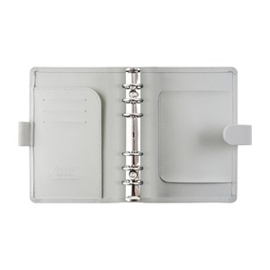 diář Saffiano osobní, modrá barva, jednoduchý a sofistikovaný design, desky z imitace kůže s jemnou strukturou a dvojtónovým efektem, zavírání na pásek s patentem, poutko na pero, náplň Classic, papír vhodný pro plnicí pera 80 g/m², nedatovaný roční plánovač, úvodní stránka, rozřazovače, linkované, čisté a tečkované papíry, kontakty, seznam úkolů, barevné linkované papíry, pravítko / záložka, levá strana: 3 kapsy na karty, 1 větší kapsa, elastické poutko na pero, pravá strana: kapsa na poznámkový blok, kroužková mechanika 23 mm, výška 188 mm, šířka 135 mm, hloubka 35 mm