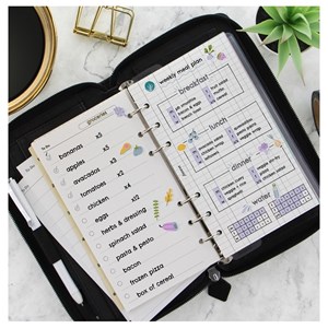 Obash: kalendář týden/2 strany ČJ a SJ, rozřaďovač se 6 záložky, pravítko/záložka, seznam úkolů (2 listy), bíle linajkové papíre (2 listy), bílé čtverečkové papíry (2 listy), bílé čisté papíre (2 listy), modré linajkové papíry (2 listy), zelené linajkové papíry (2 listy), růžové linajkové papíry (2 listy), adresář (4 listy), 12 kapes na karty, multifunkční elastický držák, 1 vertikální kapsy, 6 kapes na karty, 3 vertikální kapsy, 1 kapsa na zip, elastické poutko na pero, Hloubka - 31mm, Šířka - 125mm, Výška - 208mm