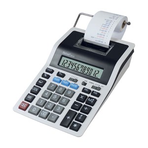 stolní tisková kalkulačka s dvoubarevným tiskem, 12místný displej a gumové klávesy, korekční tlačítko, funkce Mark Up, funkce TAX a Cost/Sell/Margin, nastavení zaokrouhlování a počtu desetinných míst, sčítač položek, funkce přepočtu měn, napájení 4× AAA bateriemi (volitelný AC adaptér), rozměry 219 × 154 × 58 mm, hmotnost 480 g