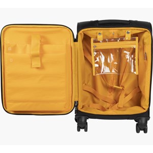 kabinový kufr vhodný jako příruční zavazadlo, je kompatibilní pro většinu leteckých společností, snadná manipulace díky 4 otočným kolečkům a pohodlné teleskopické rukojeti, prostorný interiér s křížovými popruhy, odnímatelná průhledná toaletní taška pro snadnou manipulaci na letišti, samostatné polstrované kapsy na notebook nebo tablet do 15,6“, zavazadlo lze zajistit pomocí vestavěného TSA zámku, součástí tašky je i štítek pro identifikaci majitele, j možné také nabití mobilního telefonu či tabletu pomocí USB portů a integrovaných kabelů (2 USB porty a 1 micro-USB port integrovaný, autonomní nabíječka není součástí), rozměry: 37 x 55 x 23 cm