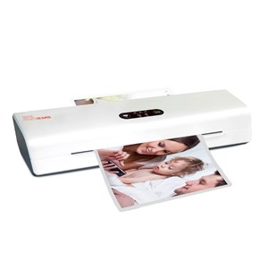 rychlý kancelářský laminátor pro laminování i barevných dokumentů, dotykové ovládání pro nastavení teploty, studené a teplé laminace a zpětného chodu, velkou předností je laminovací rychlost 800 mm/min., která je v této cenové kategorii výjimečná, automatické vypnutí stroje po 30 minutách, optická signalizace dosažené teploty a připravenosti k laminaci, systém pro uvolnění laminovacích válců v případě uvíznutí laminovaného dokumentu, pro laminovací kapsy 80 – 125 mikronů