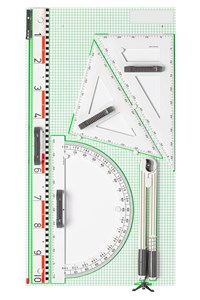 kompletní řada plastového tabulového příslušenství německé značky Wissner, pravítka a úhloměry jsou vybaveny rukojetí pro snadnější manipulaci, vybrat si můžete z jednotlivých produktů nebo ucelené sady, bílé provedení je s magnety na magnetické tabule, materiál RE-Plastic®, sada obsahuje: pravítko 100 cm, úhloměr 50 cm, pravoúhlý trojúhelník 45/90° 60 cm, trojúhelník 30/60° 60 cm, kružítko délky 45 cm s přísavkami, univerzální úchytka na křídy, popisovače do průměru 16 mm, ukazovátko 100 cm, rozměr desky na zavěšení 102 x 55 x 4 cm