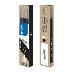 Gelová, termosenzitivní gumovací náplň Pilot FriXion Point zajišťuje mimořádně jemné a přesné psaní. Díky možnosti vymazání třením umožňuje rychlé a čisté opravy bez použití korektoru, takže je ideální pro školu, kancelář i každodenní psaní. Hrot 0,5 mm se stopou 0,25 mm, v balení 3 modré náplně.