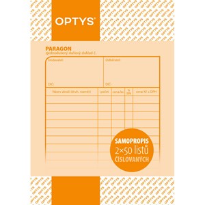Kód: 120860 Dostupnost Optys 1086 paragon číslovaný 2 x 50 listů NCR A6 tiskopis splňuje všechny platné požadavky zákona o DPH, samopropisovací (NCR), číslovaný, formát A6 na výšku, obsahuje 2 x 50 listů odtržitelných perforací, se zakládacím děrováním 68,80 Kč bez DPH Dostupnost: Dostupné Množství: Přidat do košíku Podrobnosti tiskopis splňuje všechny platné požadavky zákona o DPH, samopropisovací (NCR), číslovaný, formát A6 na výšku, obsahuje 2 x 50 listů odtržitelných perforací, se zakládacím děrováním