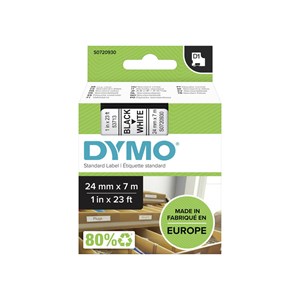 Pásky D1 standardní - 24 mm x 7 m / černý tisk / bílá páska