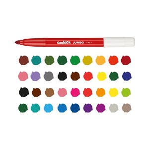 fixy Jumbo se silným hrotem ø 6 mm, maxi osmihranný tvar těla pro snadné držení, odolný hrot, dermatologicky testované, bez lepku, snadno omyvatelné a pratelné, inkoust s dlouhou životností, jasné a zářivé barvy, odvětrávané víčko, vyrobeno v Itálii, obsah balení 50 ks, nevhodné pro děti do 3 let