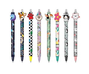 praktická gumovatelná pera pro děti s motivy, kvalitní inkoust lze v případě potřeby jednoduše vygumovat a přepsat, 8 různých motivů, barva náplně: modrá, šířka stopy: 0,5 mm, stiskací mechanika, dostupná náhradní náplň