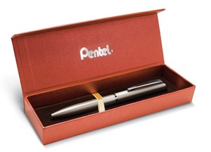 luxusní gelové pero v modrém provedení, rychleschnoucí gelová náplň EnerGel, černý inkoust, vyměnitelná náplň, otočný mechanismus, hladký příjemný úchop, tenké hladké celokovové tělo, stopa 0,5mm, dodáváno v dárkové krabičce