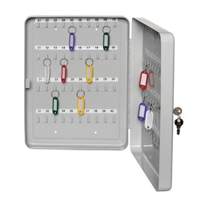 Schránka je vyrobená z kvalitního ocelového plechu, uvnitř i vně kvalitní lakování proti poškrábání. Otočný cylindrický zámek se 2 klíči. Určené pro upevnění na stěnu. Rozměr schránky na klíče: šířka 160 mm, výška 80 mm, hloubka 200 mm.