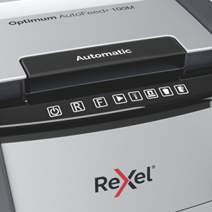 Skartovačka Optimum AutoFeed 100M automaticky skartuje až 100 listů papíru A4 (80 g /m2) mikro řezem P-5 (2x15mm). Tato skartovačka s automatickým podáváním je sofistikovaný kancelářský skartovač s výsuvným košem o objemu 34L. Není třeba ručně podávat papír nebo nejdříve odstraňovat svorky a kancelářské sponky, tento automatický skartovač papíru udělá vše za vás.