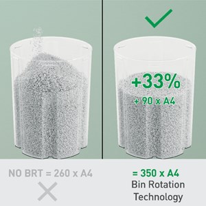 kancelářský skartovač Leitz IQ OptiMax nabízí velmi výkonné skartování a díky jedinečné technologii rotace koše (Bin Rotation Technology - BRT), která zvyšuje kapacitu koše o 33 % (cca o 90 listů A4 více), není nutné tak často vysypávat koš. Skartovačka s mikrořezem má zabezpečení DIN P5, dokáže najednou skartovat až 8 listů A4 (80 g/m2). Koš o objemu 22 l pojme až 350 listů - ideální pro efektivní a vysoce bezpečnou skartaci. Rozměr: 384 × 630 × 392 mm