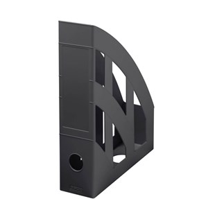 z recyklovaného plastu, určený pro ukládání a archivaci spisů a dokumentů formátu A4, stojan je vyroben z odolného plastu s designovými otvory na bočních stranách, rozměry jsou 245 × 320 × 75 mm