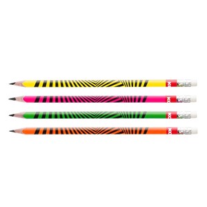 grafitová tužka se silnou a odolnou tuhou HB pro jemné psaní, ve 4 zářivých neonových barvách, vysoce kvalitní dřevo pro snadné ořezávání, trojhranný ergonomický tvar, s bílou pryží, ideální pro použití doma, v kanceláři a ve škole