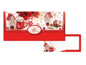 Dárková obálka na peníze s vánočním motivy a uzavíratelnou klopou. Je ideální pro dárkové účely, kdy chcete peníze předat elegantním a vkusným způsobem. Uvnitř je kartička bez textu, na kterou můžete napsat věnování.