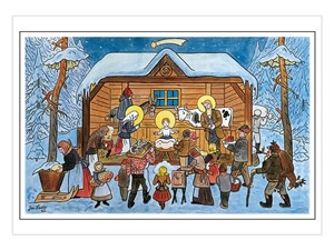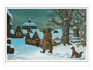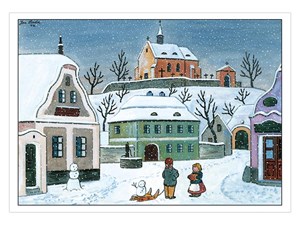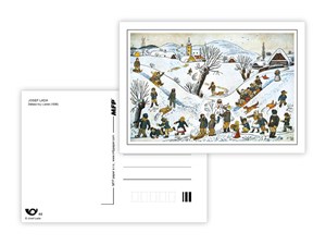 Vánoční pohlednice Josef Lada - V této sadě pohledů najdete nejznámější Vánoční obrázky Josefa Lady. Malíř Josef Lada Vás ve svých obrázcích zavede do zasněžených Hrusic, na návsi potkáme ponocného, u potoka sáňkují děti a nesmí chybět ani Ladův tradiční betlém. Na zadní straně těchto pohledu není předtištěný text s přáním.