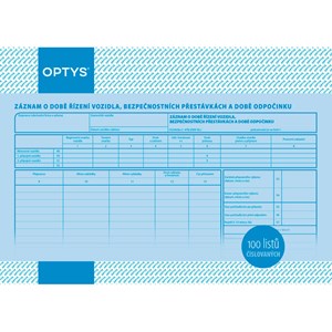 Optys 1166 záznam o provozu nákladního vozidla číslovaný A4